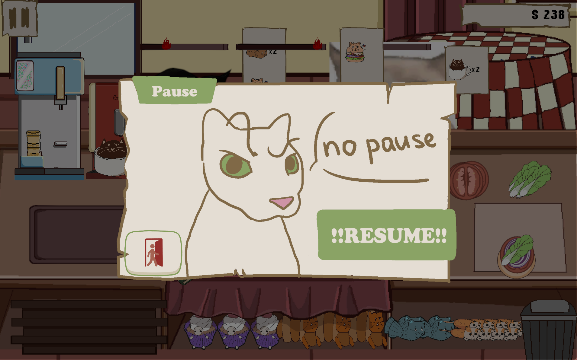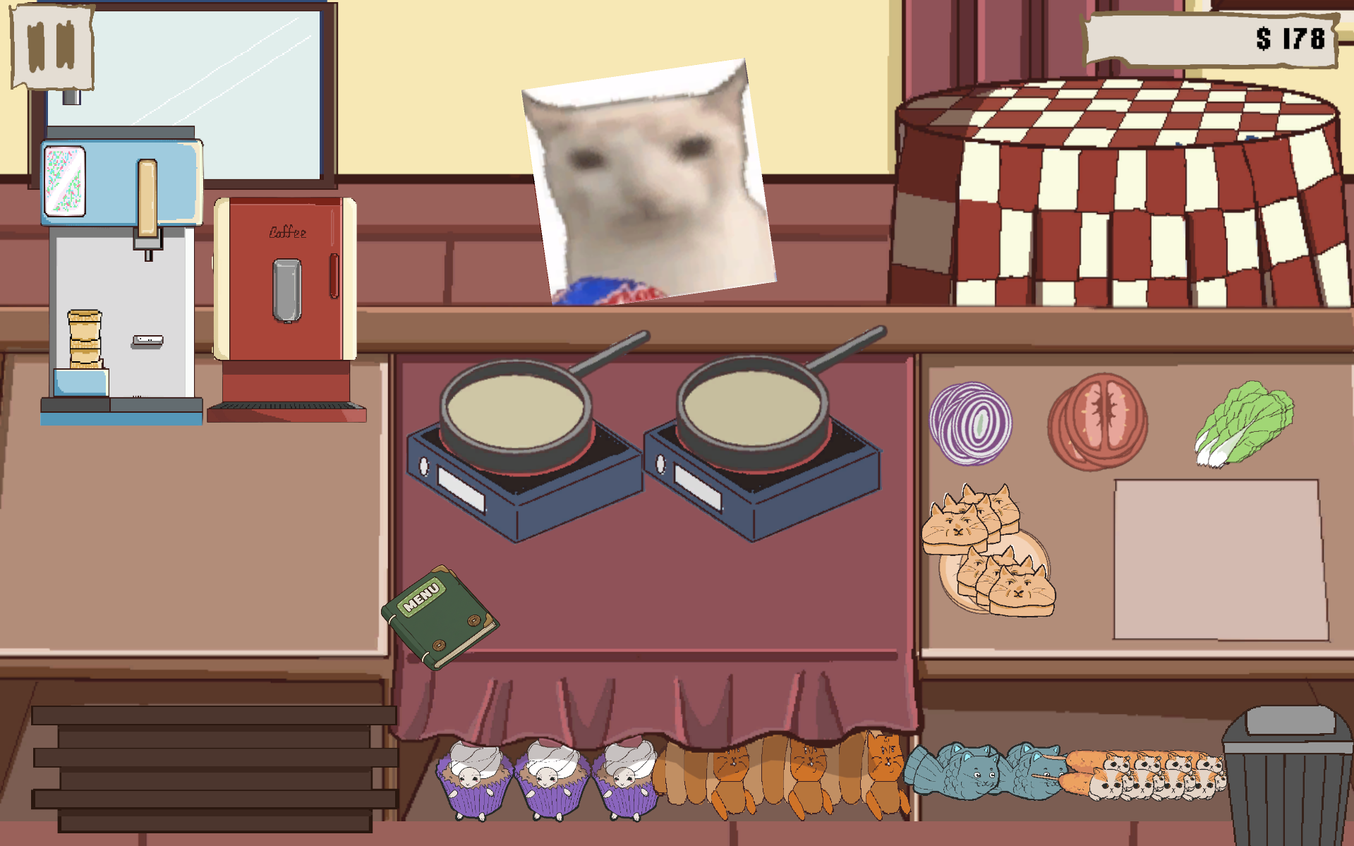 Игрок выступает в роли владельца кафе, обслуживающего посетителей в виде котов. Основная задача — своевременно обслуживать клиентов, выдавая им их заказы до того, как истечет их терпение.